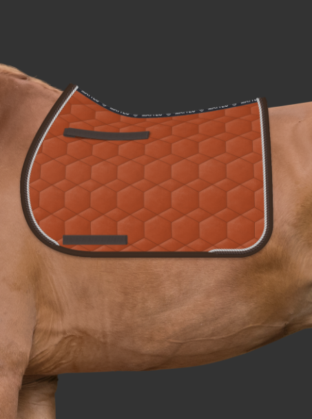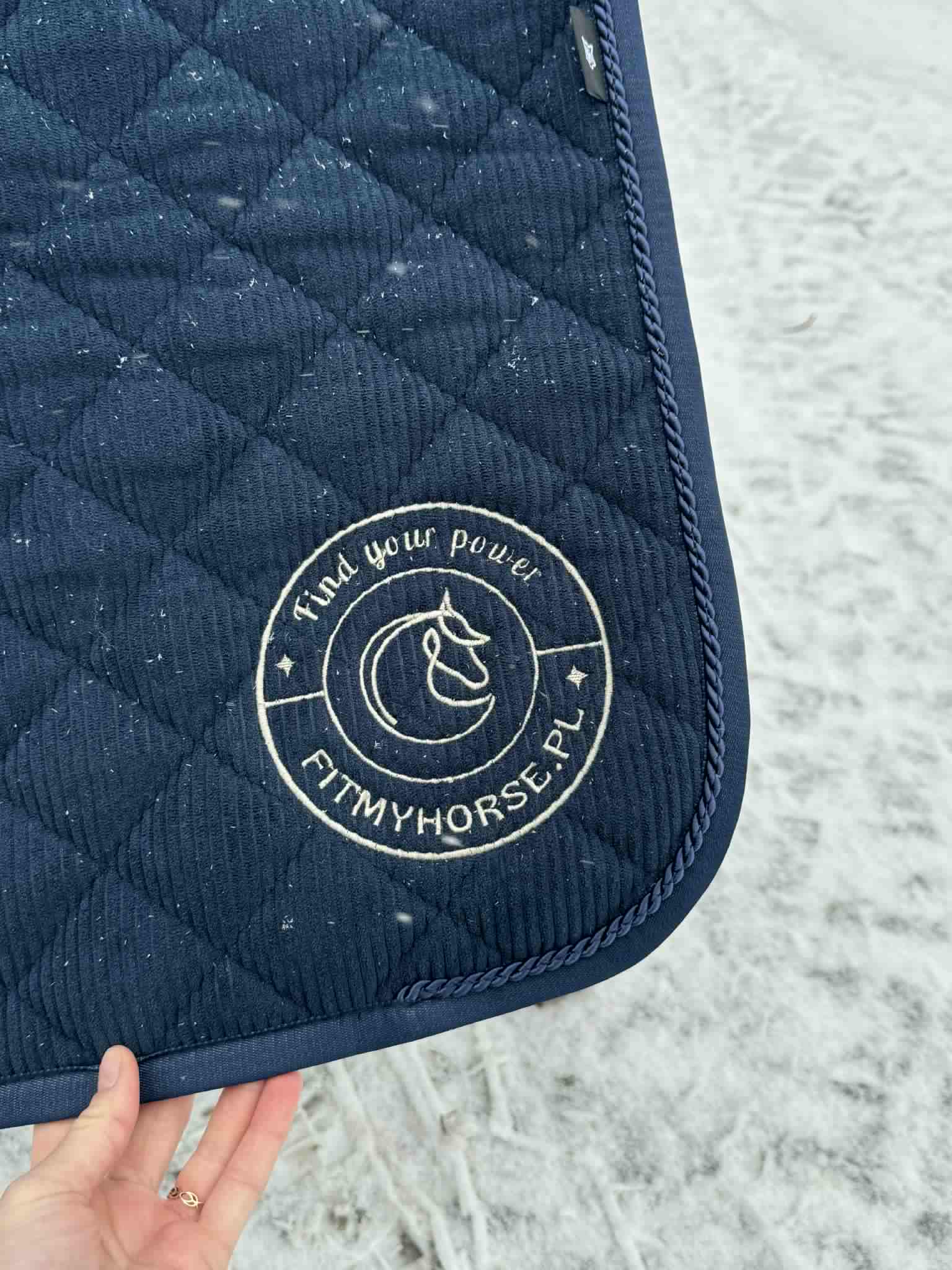 Czaprak Mattes "Blue Moon Velvet" to czaprak w kolorze pomarańczowym z lamówką w kolorze brązowym oraz dwoma sznureczkami (biały oraz ciemny brąz). Czaprak o większym pikowaniu z materiału przypominającego zamsz. W porównaniu do wersji Quilt jest grubszy. Grzbiet czapraka lekko profilowany na kłąb. Posiada naszyte logo sklepu fitmyhorse.pl w kolorze białym, ale oczywiście jest możliwość wykonania tego czapraka bez naszego logo, wówczas prosimy o umieszczenie tej informacji w uwagach do zamówienia lub w mailu.
